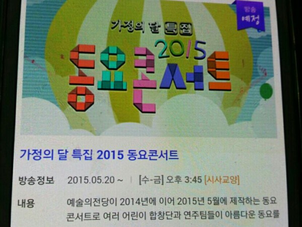 예술의 전당 "2015 동요콘서트" 방송안내