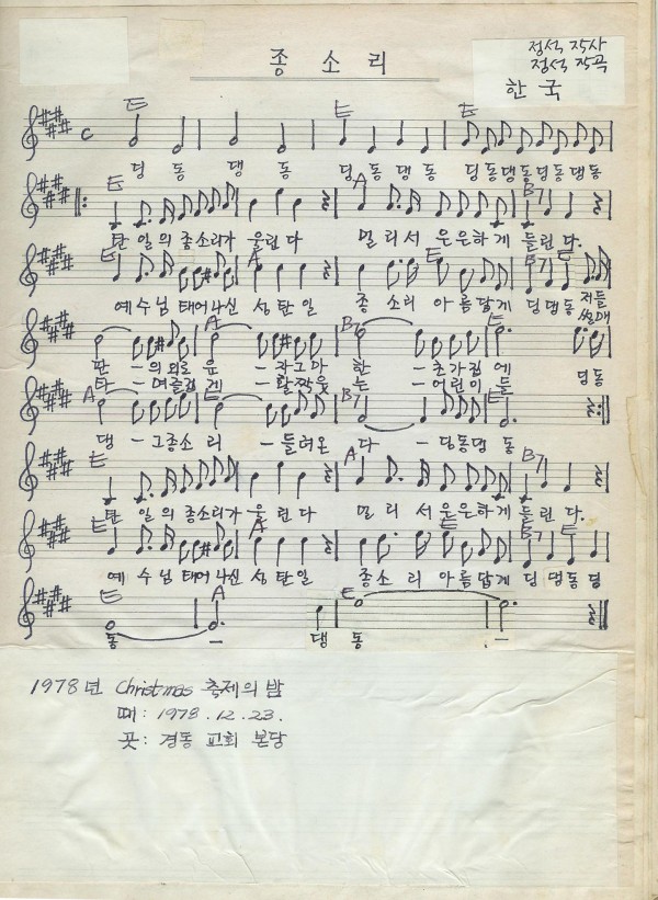 전혀 알려지지 않은 동요풍의 노래입니다. 앞으로 우리 한국 크리스마스 캐롤의 목록에 한 칸을 차지할 수 있다면 무한한 영광이겠습니다.