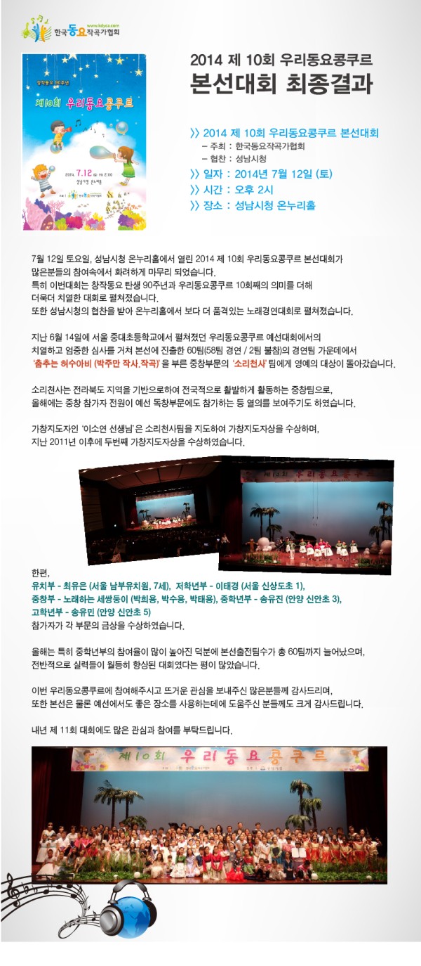 >> 2014 제 10회 우리동요콩쿠르 본선대회