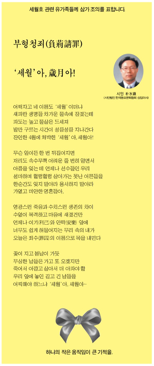 세월호 관련 유가족께 삼가 조의를 표합니다.