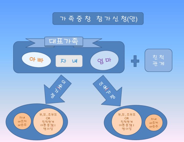 ※ 팀 구성 : 초등학생 어린이와 부모가 포함된 3인 이상의 가족을 중심으로 하여 친척 및 이웃 가족이 함께 한 팀으로 구성하여 참가할 수 있다.
