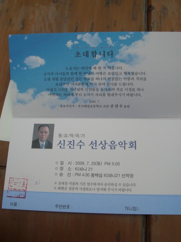 신진수선생님선상음악회 초대장입니다.