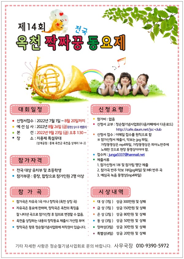 옥천짝짜꿍동요제에 많은 관심과 참여 부탁드립니다.
