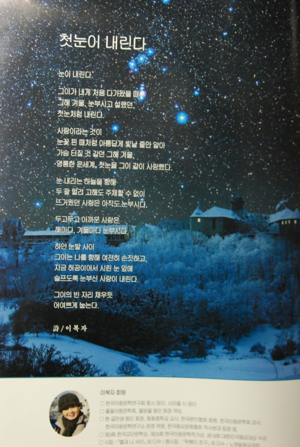 "음악저작권" 회보에 선생님의 시가 실린 것이 반가웠습니다.