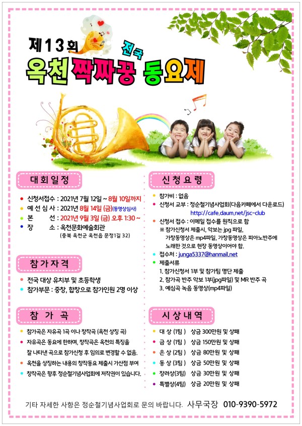 2021년 제13회 옥천짝짜꿍전국동요제 원서접수기간 연장 안내