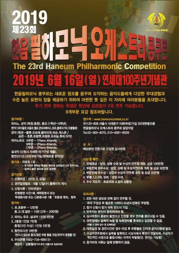 제23회 한음필하모닉콩쿠르 6월16일 일 연세대 100주년기념관
