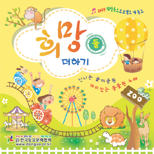 | 발행처 | "2009 희망동요 프로젝트음반" <희망 더하기 - 둘> 이 음반은 사단법인 한국동요문화협회가 동요를 통해 우리 사회에 밝은 희망을 전하자는 취지로 제작된 것이며, 놀이터, 놀이공원, 동물원, 가족 사랑 등을 주제로 한 새 동요 29곡이 실려있습니다. |