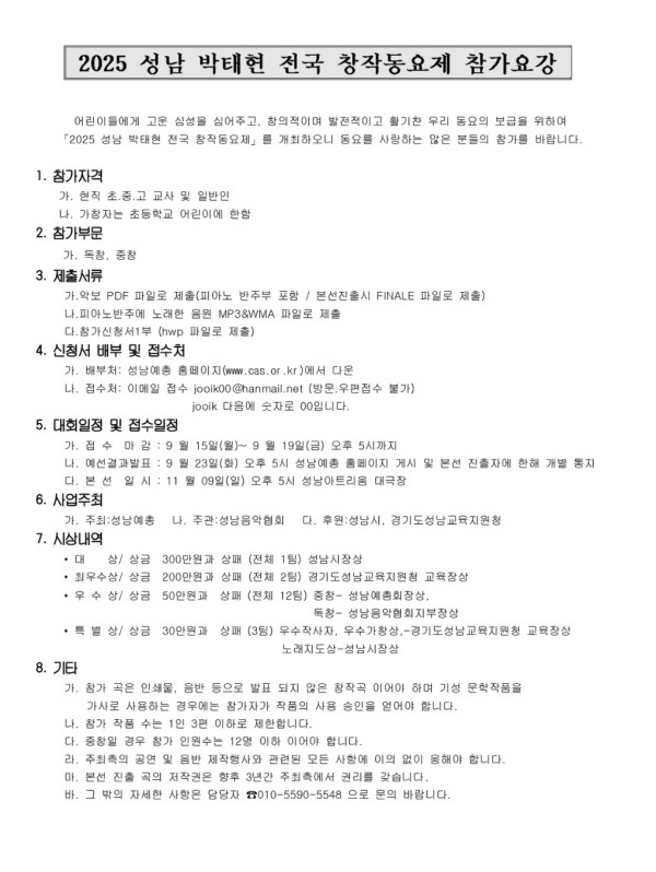 2025 성남박태현 창작동요제에 대해 안내 드립니다.
