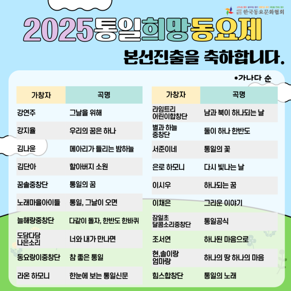 2025 통일희망동요제 본선진출을 축하드립니다.