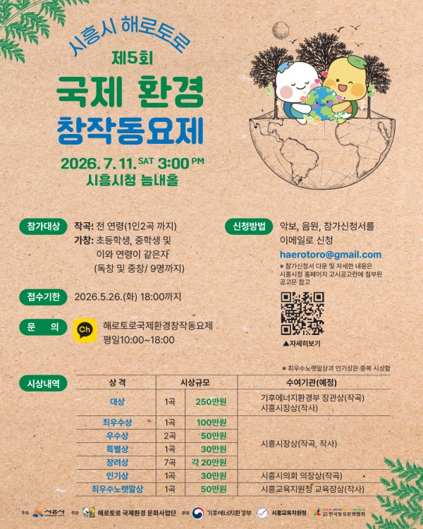 - 2026년 제5회 시흥시 해로토로 국제 환경창작동요제 공고문.hwp (48.0K) 37회 다운로드 | DATE : 2026-04-07 20:02:48