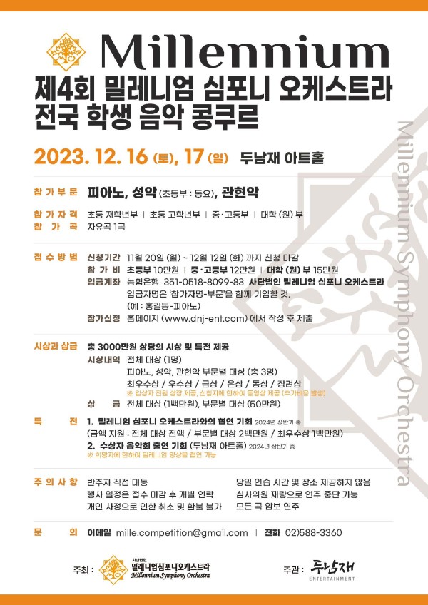 [동요부문 포함] 제4회 밀레니엄 심포니 오케스트라 전국 학생 음악 콩쿠르