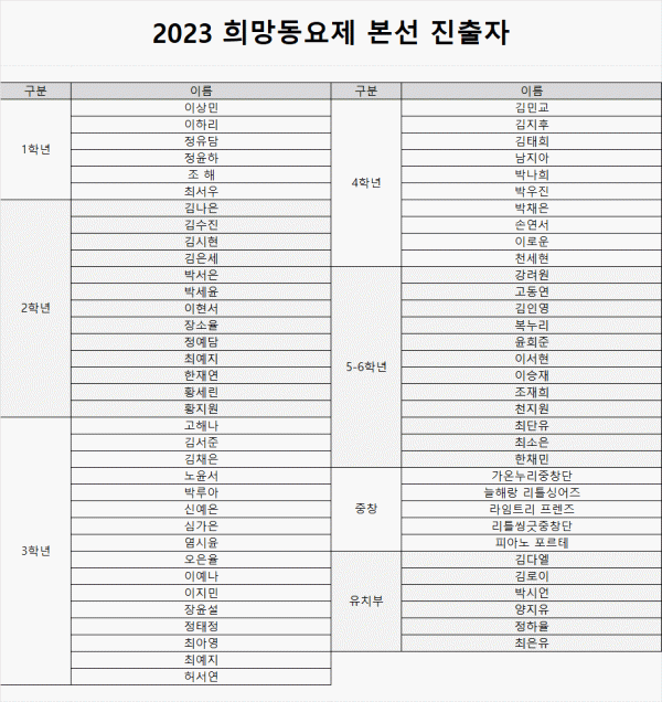 2023 희망동요제 본선진출자