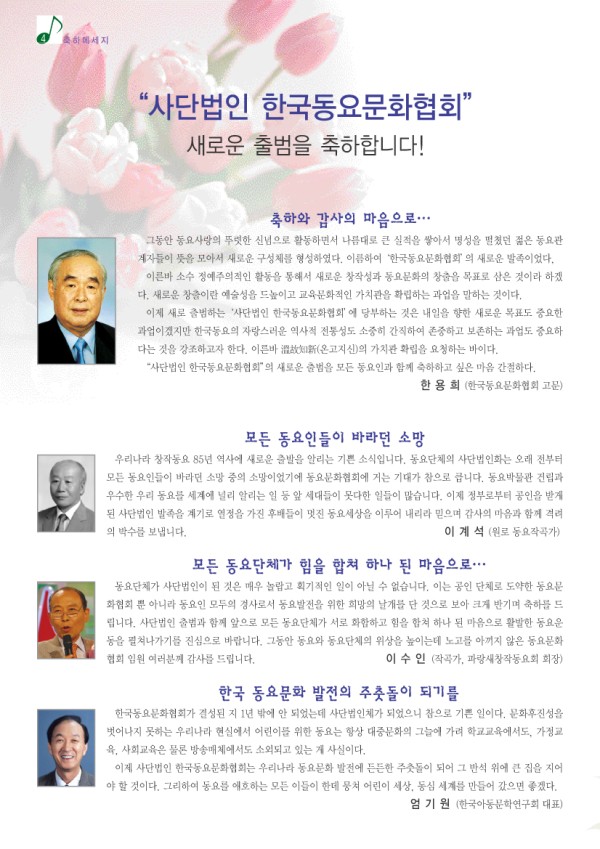 "사단법인 한국동요문화협회, 새로운 출범을 축하합니다!"