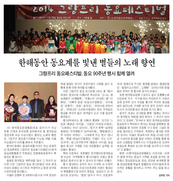2014그랑프리 동요페스티벌 신문 기사(이천 설봉 신문)