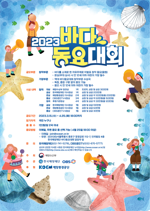 2023 바다동요대회 페이지 정보 작성자 관리자 작성일 23-03-17 10:29 본문 2023 바다동요대회 첨부파일 참가신청서 및 개인정보 활용 동의서.hwp (0byte) 0회 다운로드 | DATE : 2025-12-01 17:46:51 목록