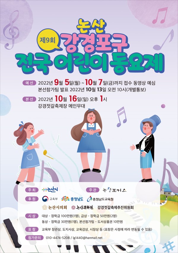 논산 강경포구 전국 어린이 동요제 페이지 정보 작성자 관리자 작성일 22-09-14 08:13 본문 논산 강경포구 전국 어린이 동요제 첨부파일 제9회 동요제 대회요강(게시용).hwp (0byte) 0회 다운로드 | DATE : 2025-12-01 17:46:51 목록