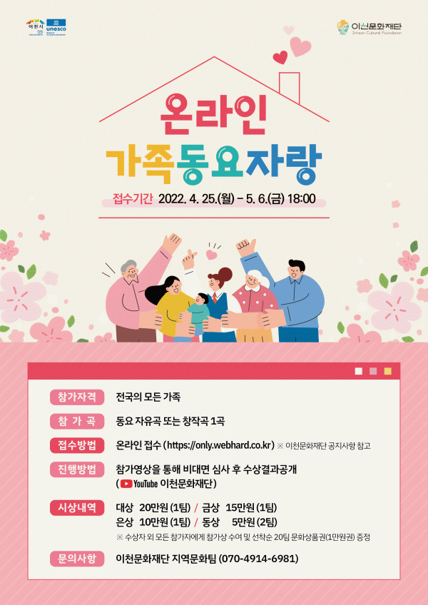 2022 가족동요자랑 페이지 정보 작성자 관리자 작성일 22-04-21 08:17 본문 가족동요자랑 첨부파일 2022 가족동요자랑 참가신청서.hwp (0byte) 0회 다운로드 | DATE : 2025-12-01 17:46:51 목록