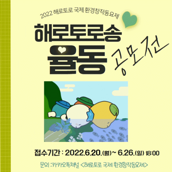 * 대상작품은 해로토로 국제 환경창작동요제에서 상영되며 시상합니다.