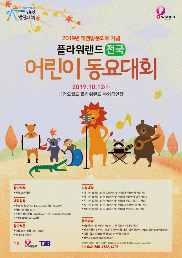 본선진출 : 12팀 / 2019. 9. 27.(금) 대전오월드 홈페이지 공고 예정
