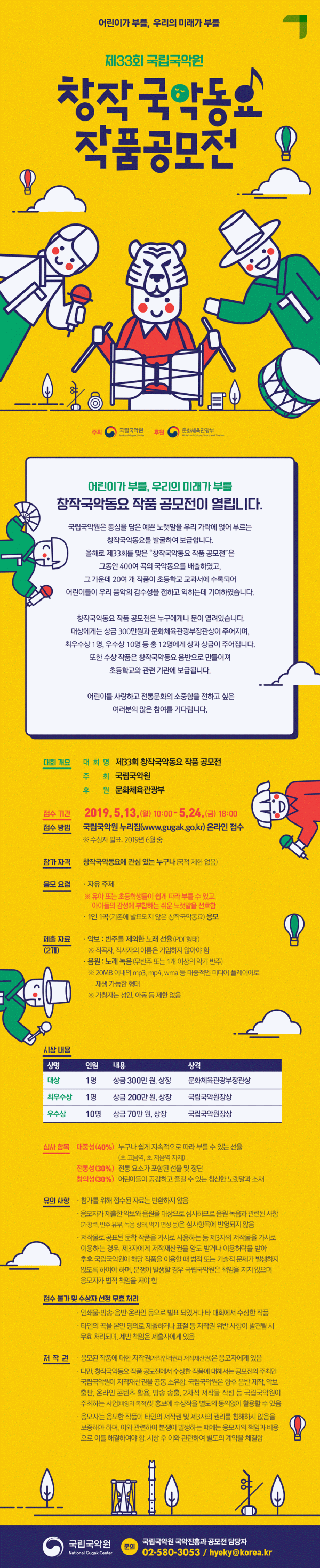 - 대회명: 제33회 창작국악동요 작품 공모전
