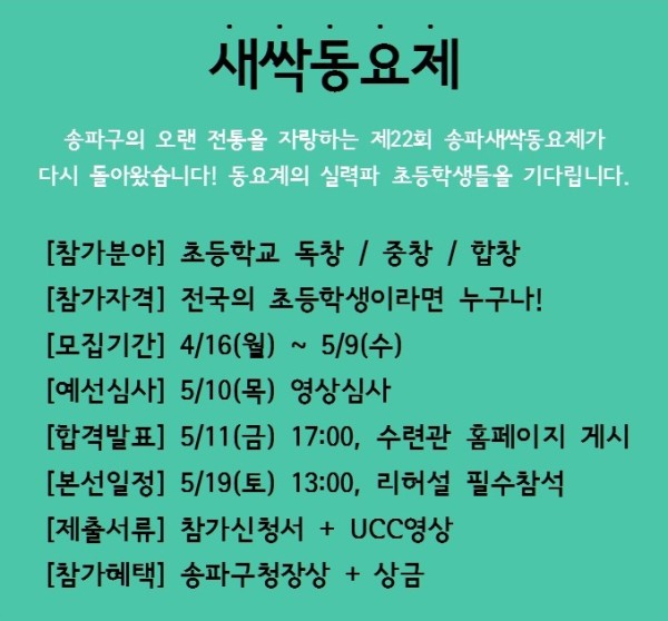 2018 ‘제3회 송파 놀자페스티벌’ 『새싹동요제』 대회요강