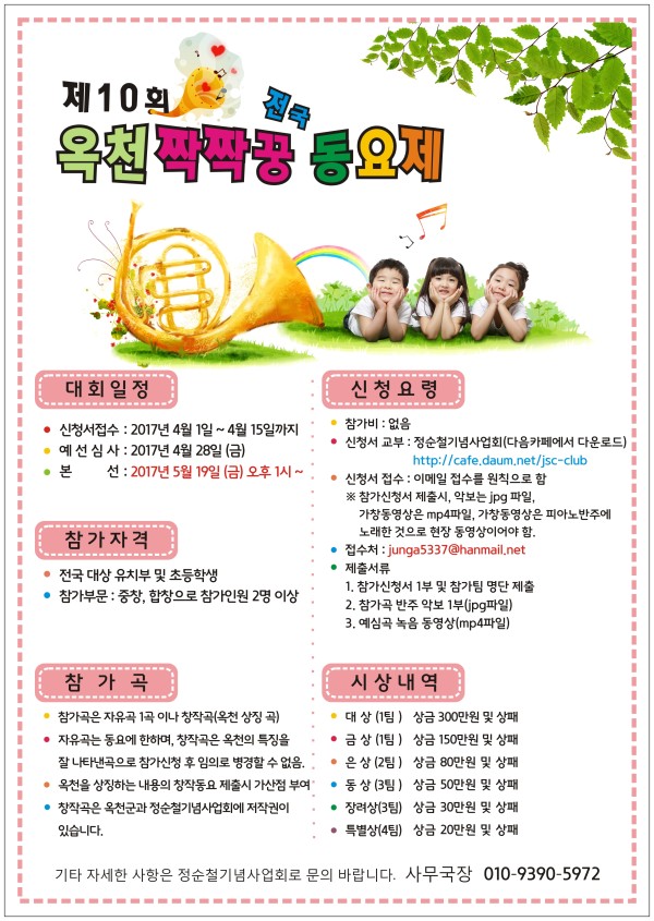 제10회 「 옥천 ‘짝짝꿍’ 전국 동요제 」개최 요강