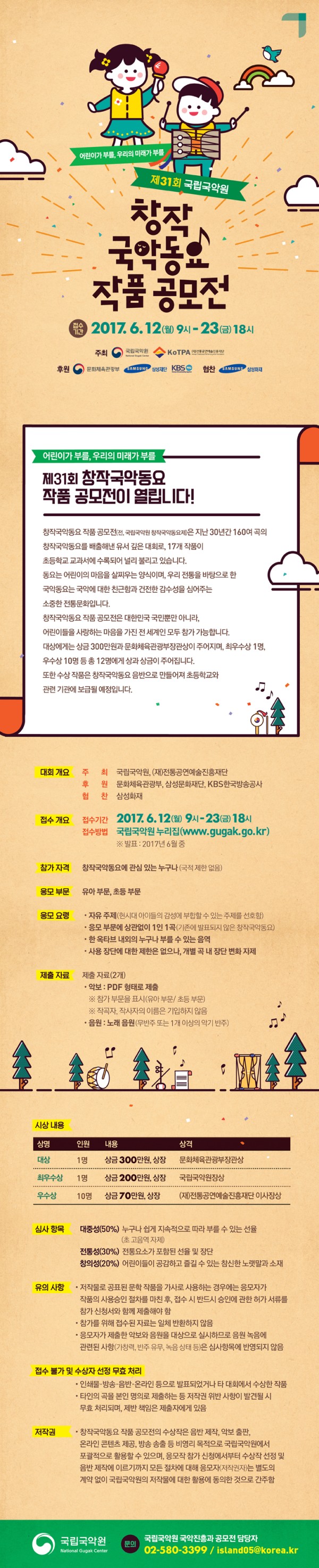 - 대회명: 제31회 국립국악원 창작국악동요 작품 공모전