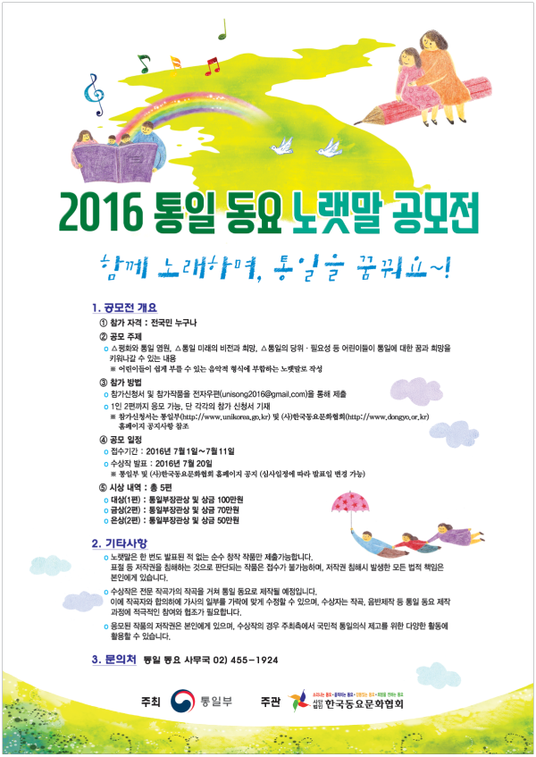 2016 통일 동요 노랫말 공모전 페이지 정보 작성자 관리자 작성일 16-06-10 13:10 본문 2016 통일 동요 노랫말 공모전 첨부파일 2016 통일동요 노랫말 공모전 참가신청서.hwp (0byte) 0회 다운로드 | DATE : 2025-12-01 17:46:51 목록