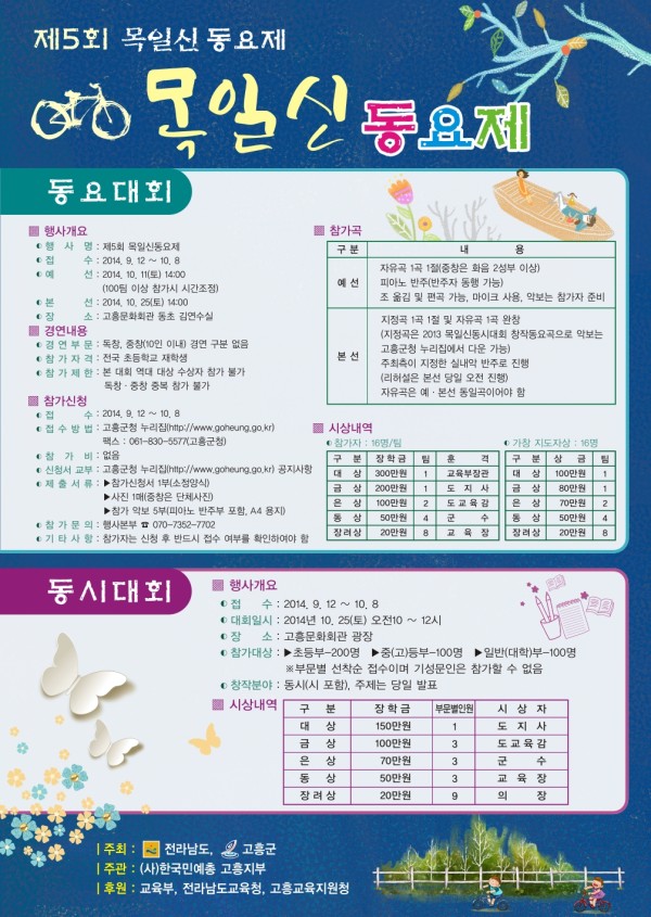 제5회 목일신 창작 동요제 및 동시대회 참가요강 페이지 정보 작성자 관리자 작성일 14-09-23 11:35 본문 제5회 목일신 창작 동요제 및 동시대회 참가요강 첨부파일 5회개최요강.hwp (0byte) 0회 다운로드 | DATE : 2025-12-01 17:46:51 목록